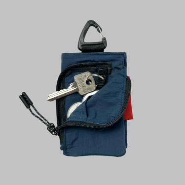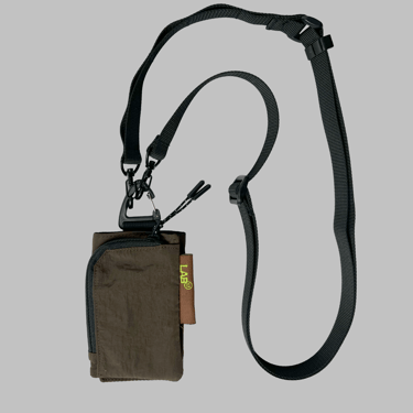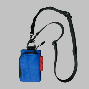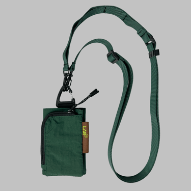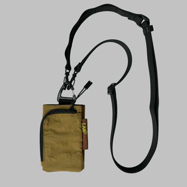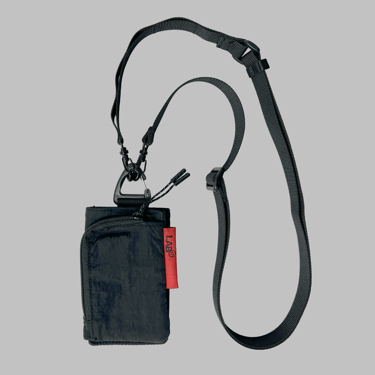 This mini sling pocket is made from nylon crinkle with a tri-fold design and a front zippered pocket. Designed for carrying cash, cards, and keys, that can be worn as a sling or a lanyard.